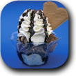 Gemischtes Milcheis, Schokosoße, Schokoraspel, Sahne
