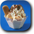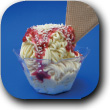 Gemischtes Milcheis, Banane, Schokosoße oder Kirschen, Schokoraspel, Sahne
