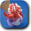 Vanille- und Erdbeereis, Erdbeeren, Erdbeersoße, Sahne