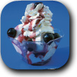 Schokoladeneis, Kirschen mit Soße, Schokostreusel, Kirschlikör, Sahne