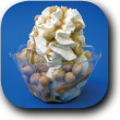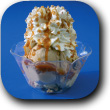 Gemischtes Milcheis, Caramelsoße, Rum, Krokantstreusel, Sahne