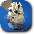 Gemischtes Milcheis, Eierlikör, Schokosoße, Streusel, Sahne